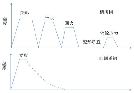 图1.1 调质钢与非调质钢锻件生产工艺比较