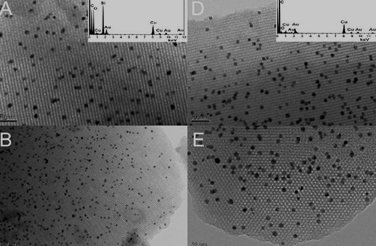 研究表明,纳米颗粒沉积到金属氧化物上时能显著提高催化活性。Lu[5]等人采用沉积-沉淀法(DP)将Au纳米粒子负载到TiO2表面,Au/TiO2复合材料的光催化活性远高于单纯的TiO2。将Au纳米粒子沉积到SiO2表面,可使Au选择催化丙烯的环氧化。王等人[6]采用多元共组装的方法,成功制备了负载金纳米颗粒的有序介孔碳基催化剂,透射电镜照片如图1.1,催化剂应用于水相中氧化苯甲醇,反应12 h时,苯甲醇几乎完全转化成苯甲酸。